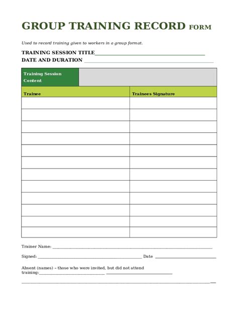 Free Group Training Record Template. What is the training record form? Securely download your document with other editable.