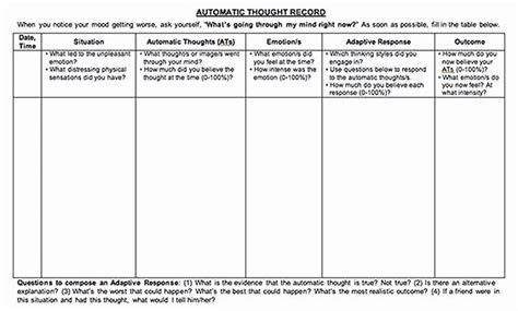 Incredible Mind Over Mood Thought Record Template. Write an alternative or balanced thought. Rerate the intensity of each mood.
