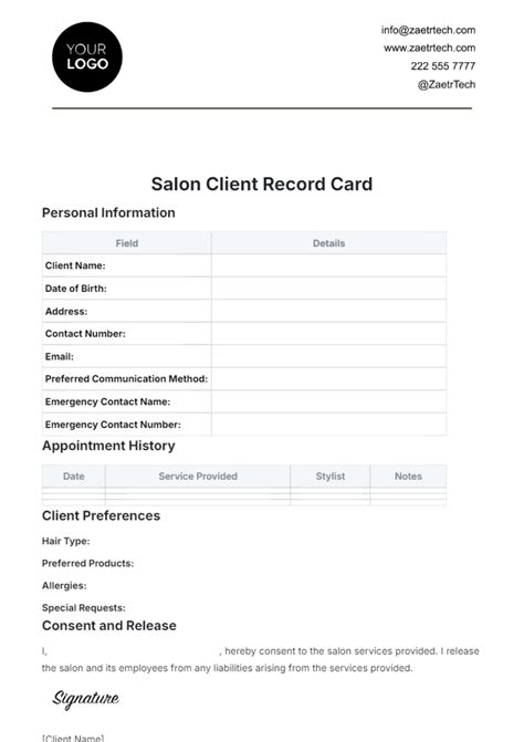 Incredible Salon Client Record Card Template. Check out how easy it is to complete and esign documents online using fillable templates and a powerful editor. Check out our hair salon client record cards selection for the very best in unique or custom, handmade pieces from our templates shops.