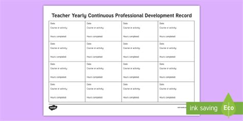 Elegant Teacher Professional Development Record Template