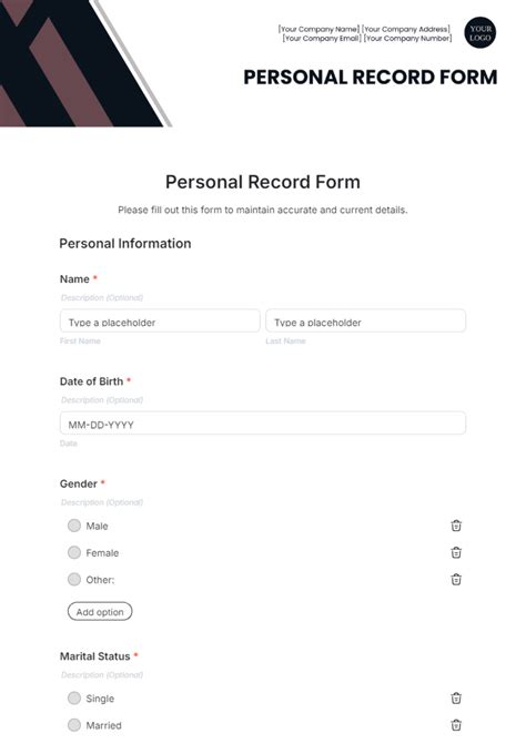 Professional Ask For Personal Record Template. Create, download, and print individual boy scout records, personal information forms, marriage or divorce records search. Manage employee, student, or patient records online with our free personal records pdf templates.